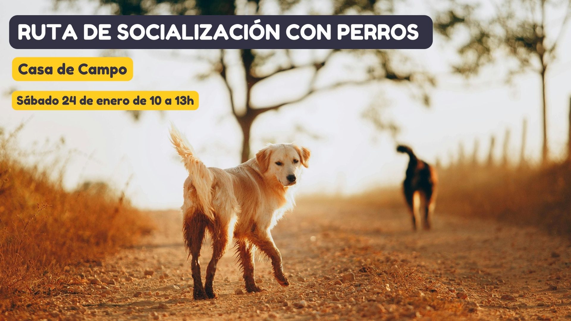 📍 Lugar: Casa de Campo (Madrid). Ruta circular fácil de 13 km entre encinares con vistas panorámicas a toda la ciudad. Apta para perros jóvenes y adultos de todos los tamaños. Cachorros y perros geriátricos consultarnos antes para valorarlo individualmente.